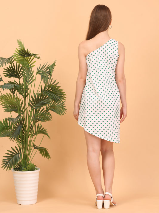 Shakun Green Polka One Side Dress
