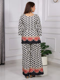 Featuring 3/4 sleeves and a relaxed, loose fit, the outfit is paired with matching palazzos that include convenient pockets on both sides—ideal for keeping essentials like your phone or keys close at hand. Lightweight and versatile, it’s a go-to choice for comfort, function, and understated charm.