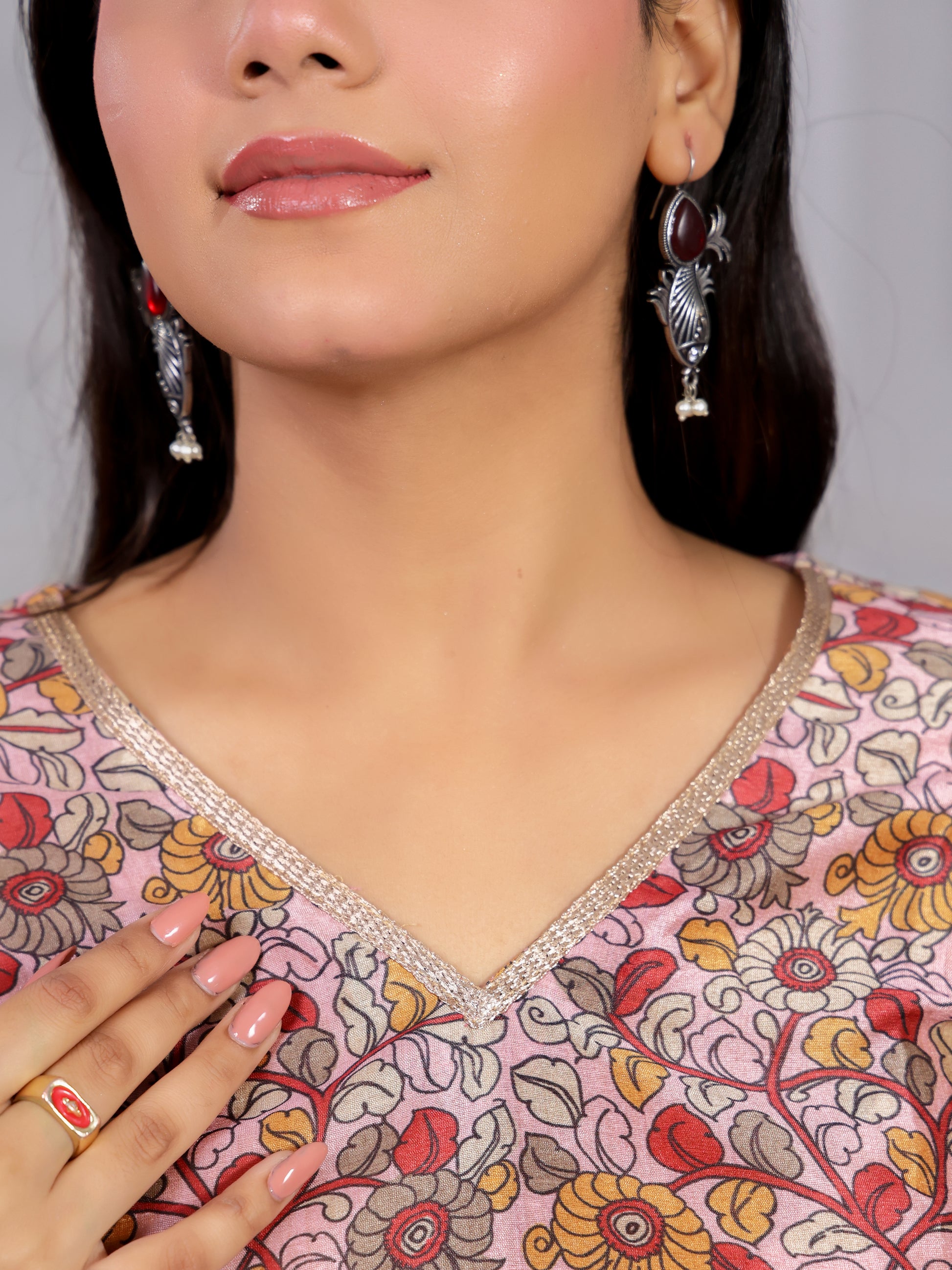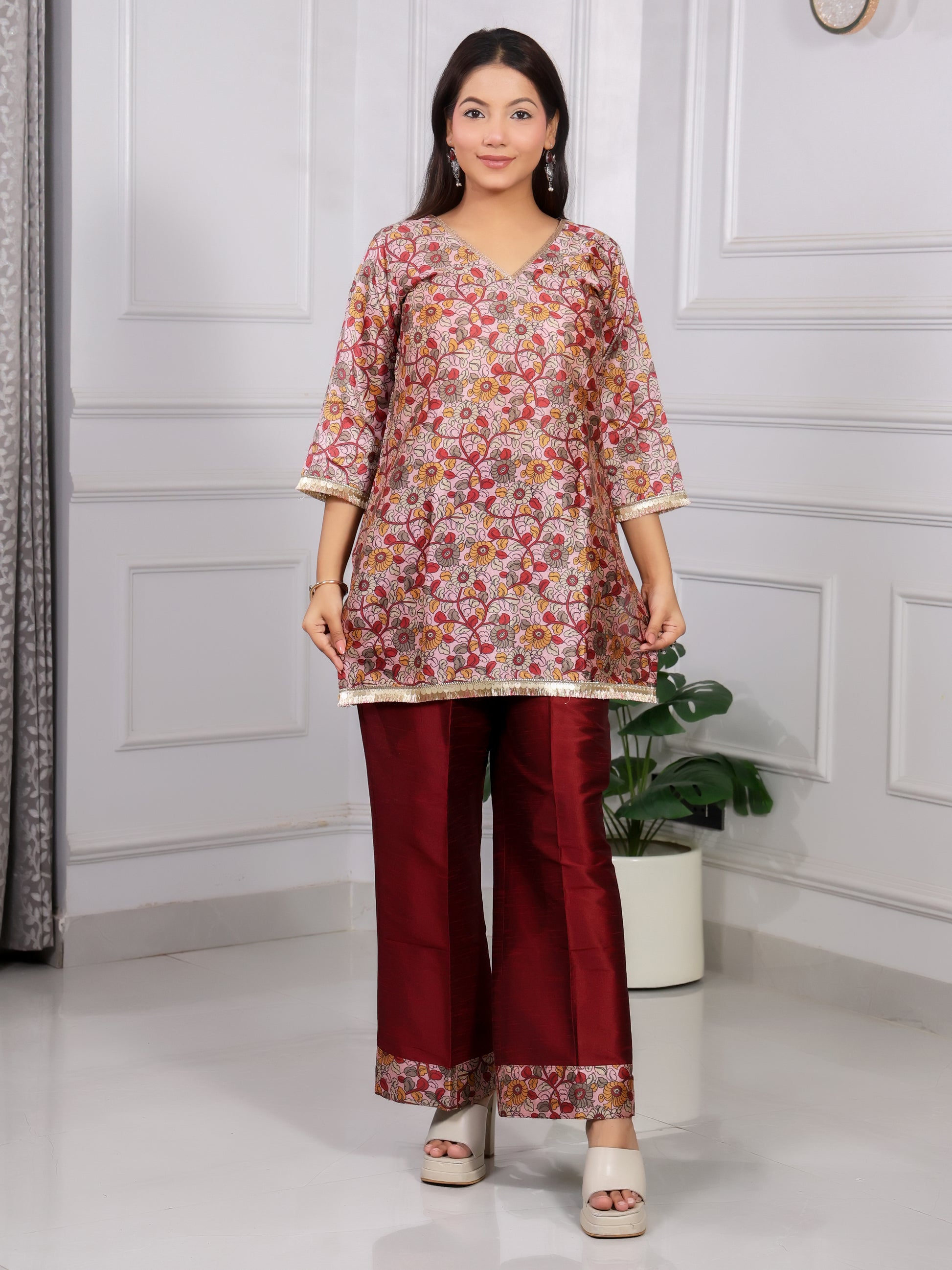 Crafted in soft mango silk, this kurti set features a gentle sheen and subtle detailing that speaks of quiet sophistication. Lightweight, breathable, and designed with functional side pockets, it’s perfect for all-day elegance with a modern edge.