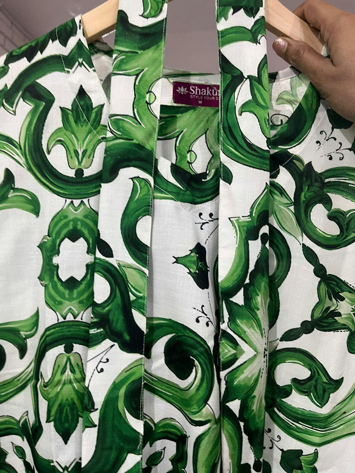 Crafted from a soft blend of linen and cotton, the Shakun Green Digital Cordset combines comfort with refined style. Its detachable belt enhances your silhouette and can be worn at the front or back for versatile looks. Thoughtfully designed pockets add a sophisticated detail, while the lightweight, breathable fabric ensures all-day ease. Perfect for vacations, outings, kitty parties, or evening gatherings, this piece offers effortless elegance for a variety of occasions.