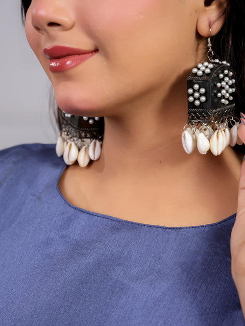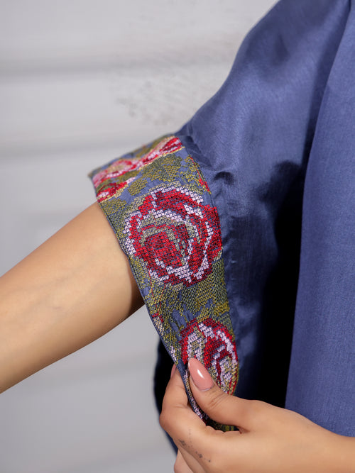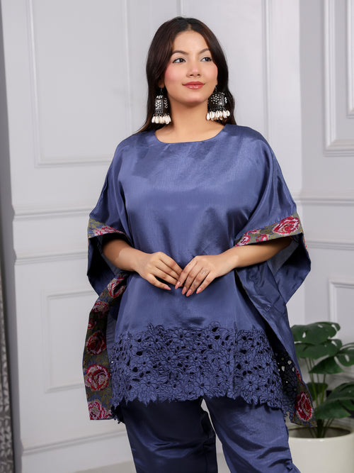Shakun Navy Blue Silk Kaftan Set