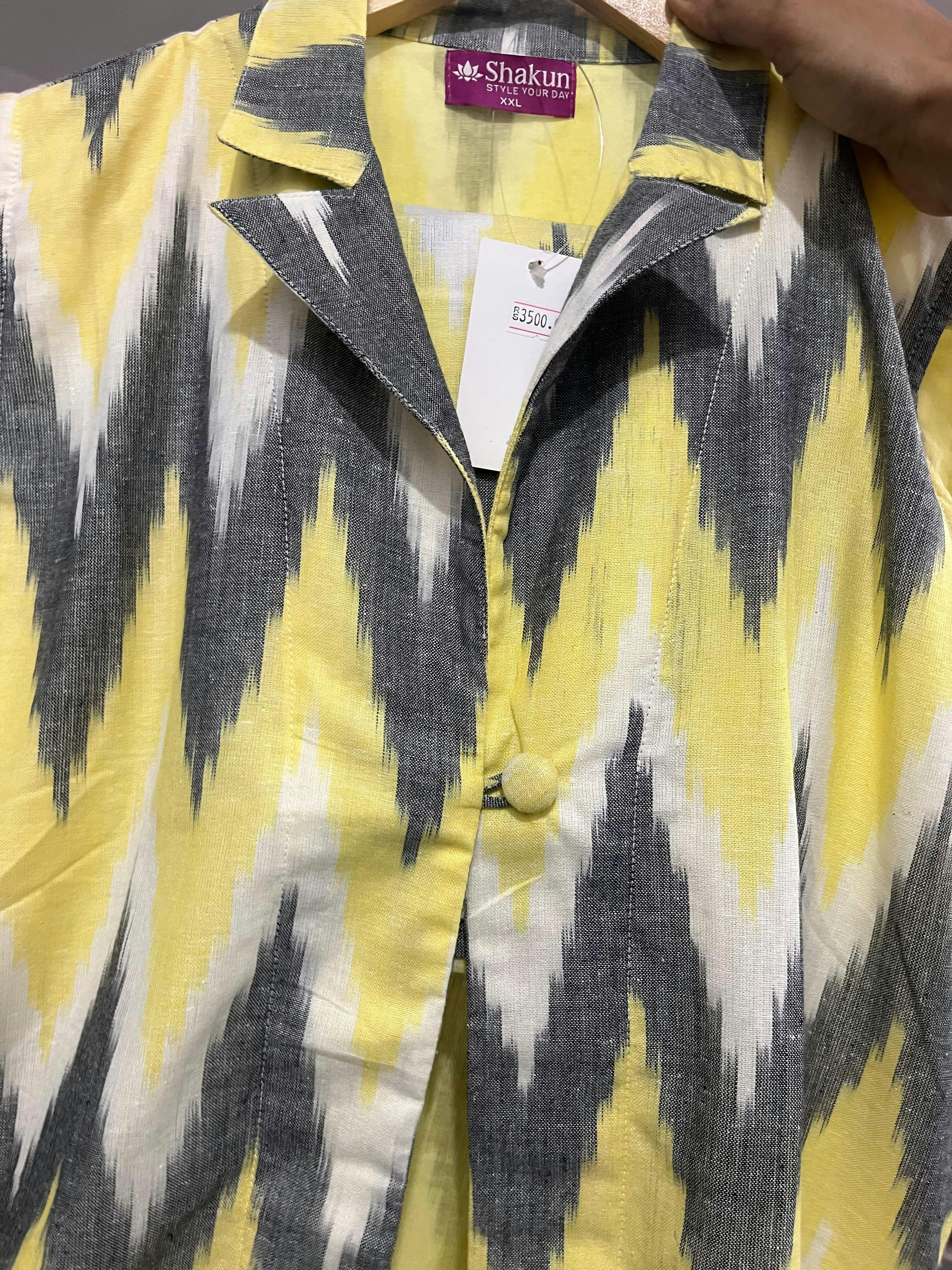 Crafted from handwoven Ikat, this dress brings together timeless craft and modern ease. The breezy silhouette flows with you, offering all-day comfort without compromising on elegance. Thoughtfully placed side pockets add everyday functionality with quiet grace.